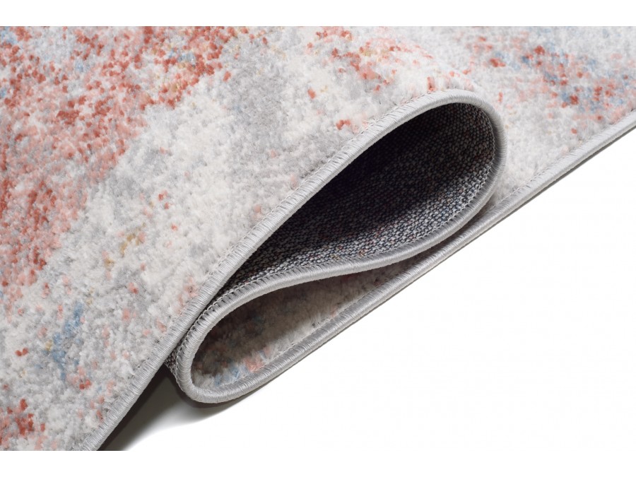 Dywan Chodnik Portlandos 00.500 salmon z kolekcji Portlandos to prawdziwa perełka dla miłośników eleganckiego i nowoczesnego designu. Jego głównym kolorem jest delikatny, pastelowy odcień salmon, który nadaje wnętrzu subtelności i ciepła. Kolory dodatkowe, takie jak różne odcienie szarości, beżu oraz subtelne akcenty w kolorze brzoskwiniowym, tworzą harmonijną kompozycję, która doskonale współgra z różnorodnymi stylami aranżacji wnętrz. Wzór dywanu jest abstrakcyjny, przypominający naturalne formacje skalne lub mgliste krajobrazy, co dodaje mu unikalnego charakteru. Kształt dywanu jest prostokątny, co sprawia, że idealnie wpasowuje się w przestrzeń salonu, sypialni czy przedpokoju. Dywan nie posiada frędzli, co nadaje mu nowoczesny i minimalistyczny wygląd.