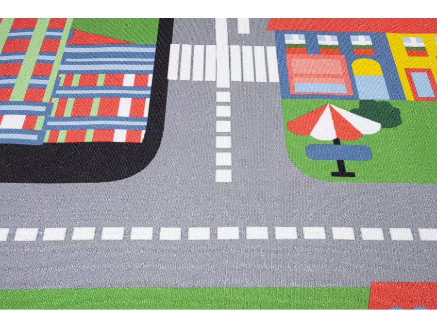 Dywany wykonane są z miękkiego, przyjemnego w dotyku poliestru, który zapewnia komfort podczas codziennych zabaw na podłodze. Materiał jest trwały, odporny na intensywne użytkowanie oraz łatwy w utrzymaniu czystości, co jest szczególnie ważne w pokoju dziecka. Regularne odkurzanie pozwala zachować estetyczny wygląd dywanu na długi czas.
