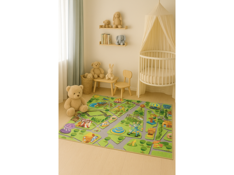 Dywany z kolekcji KIDS zostały wykonane z trwałych włókien poliestrowych. Charakteryzują się przyjemną miękkością oraz komfortową w dotyku powierzchnią. Runo o wysokości 6mm zapewnia równowagę między wygodą użytkowania a łatwością pielęgnacji.