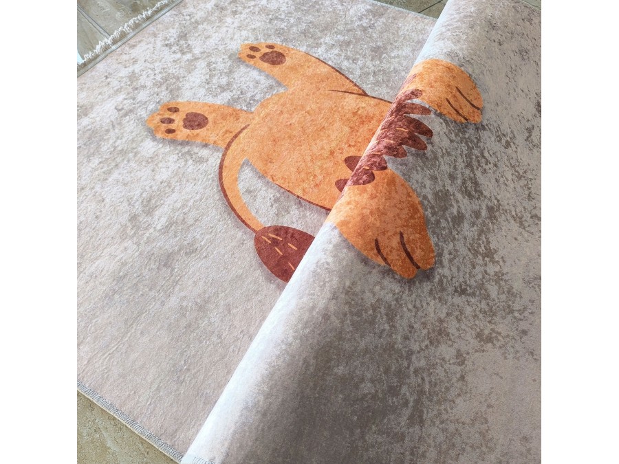 Produkt został wykonany metodą nadruku cyfrowego, co pozwala uzyskać wyraziste kolory i szczegółowe wzory, zachowując przy tym miękkość i komfort użytkowania. Spód dywanu został pokryty antypoślizgową powłoką, dzięki czemu dywan idealnie przylega do podłoża, minimalizując ryzyko przesuwania się, co jest szczególnie ważne w domach z dziećmi i zwierzętami.