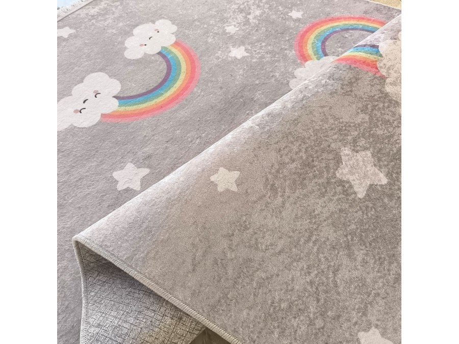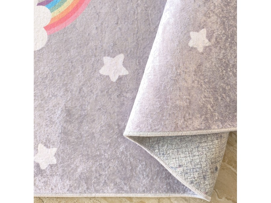 Produkt został wykonany metodą nadruku cyfrowego, co pozwala uzyskać wyraziste kolory i szczegółowe wzory, zachowując przy tym miękkość i komfort użytkowania. Spód dywanu został pokryty antypoślizgową powłoką, dzięki czemu dywan idealnie przylega do podłoża, minimalizując ryzyko przesuwania się, co jest szczególnie ważne w domach z dziećmi i zwierzętami.