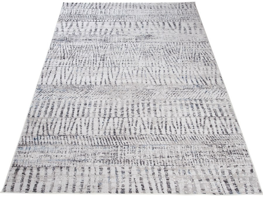 Dywan Senso 00177b l.gray z kolekcji Senso to prawdziwa perełka dla miłośników subtelnych, a zarazem wyrazistych wnętrz. Jego kolor główny to delikatny, jasny szary, który tworzy spokojne tło, idealne do różnorodnych aranżacji. Kolory dodatkowe, takie jak ciemny szary i czarne akcenty, dodają dywanowi głębi i charakteru. Wzór dywanu jest niezwykle intrygujący - składa się z geometrycznych, abstrakcyjnych kształtów, które przypominają fale lub ruchome piaski. Linie te są delikatnie rozmyte, co nadaje całości efekt trójwymiarowości i dynamiki. Dywan jest prostokątny, co sprawia, że idealnie wpasuje się w różne przestrzenie, zarówno te małe, jak i duże. Nie posiada frędzli, co dodaje mu nowoczesnego, minimalistycznego wyglądu.