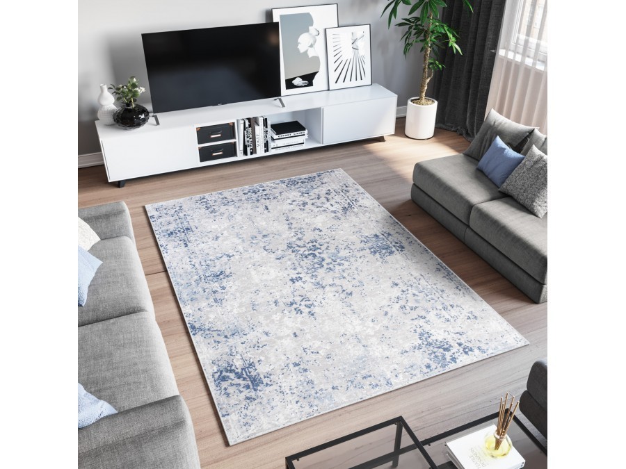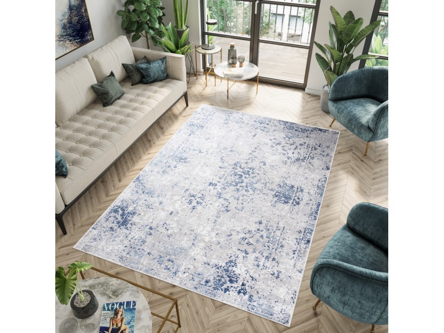 Dywan Senso 00181a gray z kolekcji Senso to prawdziwa perełka dla miłośników eleganckiego i nowoczesnego designu. Jego głównym kolorem jest delikatny, stonowany szary, który tworzy tło dla subtelnych, artystycznych wzorów. Wzory te są rozrzucone w sposób nieregularny, co nadaje dywanowi unikalny, niemalże abstrakcyjny charakter. Dodatkowe kolory, które wzbogacają ten dywan, to odcienie niebieskiego, od jasnych, pastelowych tonów po głębsze, bardziej nasycone barwy. Te niebieskie akcenty przypominają rozbryzgi farby, co dodaje dywanowi dynamiki i artystycznego wyrazu. Kształt dywanu jest klasycznie prostokątny, co sprawia, że jest on uniwersalny i łatwy do wkomponowania w różne przestrzenie. Dywan nie posiada frędzli, co dodaje mu nowoczesnego, minimalistycznego wyglądu.