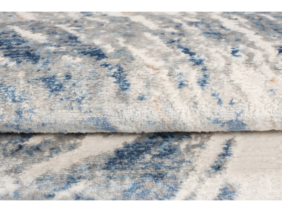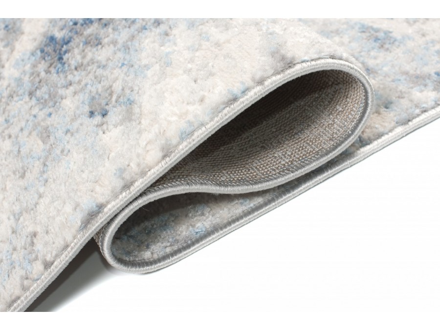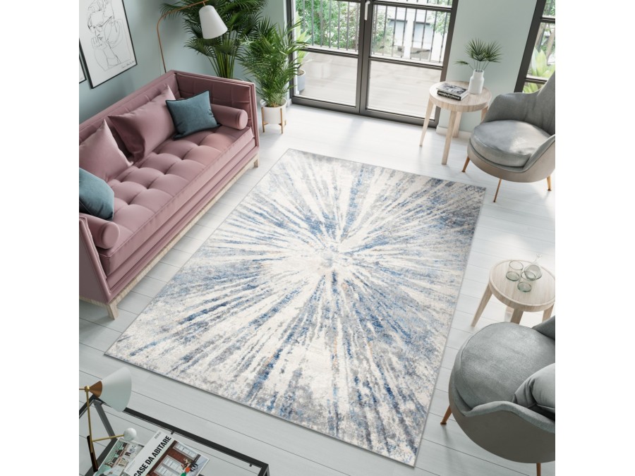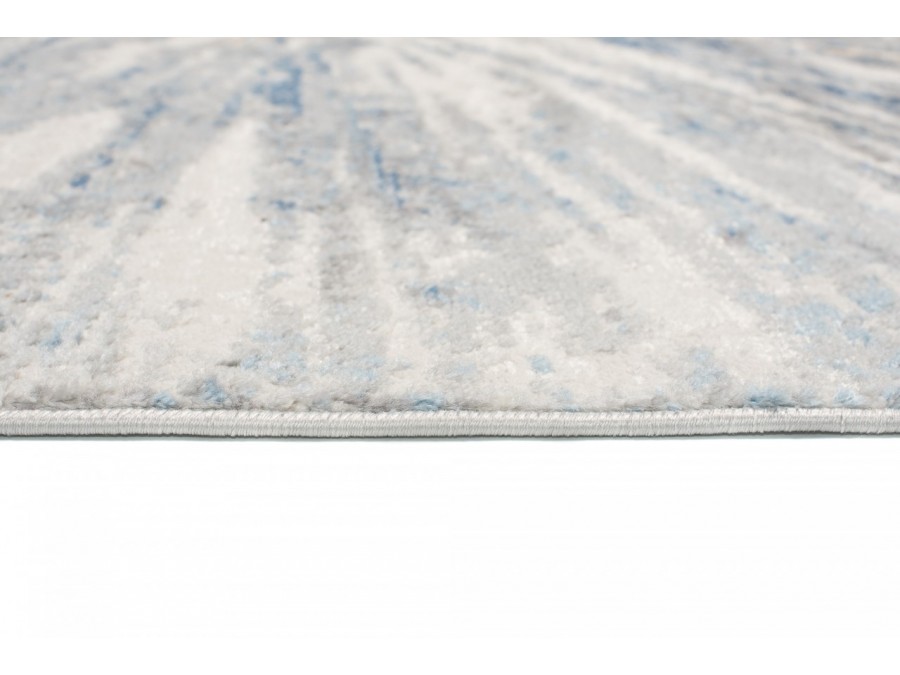 Dywan Villson 00.149b light gray z kolekcji Villson to prawdziwa perełka dla miłośników subtelnych, a zarazem eleganckich wnętrz. Jego główny kolor to delikatny jasny szary, który tworzy spokojne tło, idealne do różnorodnych aranżacji. Kolory dodatkowe to odcienie błękitu i ciemnego szarego, które w subtelny sposób przeplatają się z bazą, nadając dywanowi głębi i charakteru. Wzór dywanu jest niezwykle intrygujący - centralnie umieszczony geometryczny wzór przypomina wybuchające fajerwerki lub rozchodzące się fale, co dodaje mu dynamicznego wyrazu. Linie wzoru rozchodzą się promieniście od środka, tworząc efekt ruchu i światła, co sprawia, że dywan przyciąga wzrok i staje się centralnym punktem pomieszczenia. Kształt dywanu jest klasyczny, prostokątny, co sprawia, że łatwo dopasować go do różnych przestrzeni. Nie posiada frędzli, co dodaje mu nowoczesnego charakteru.
