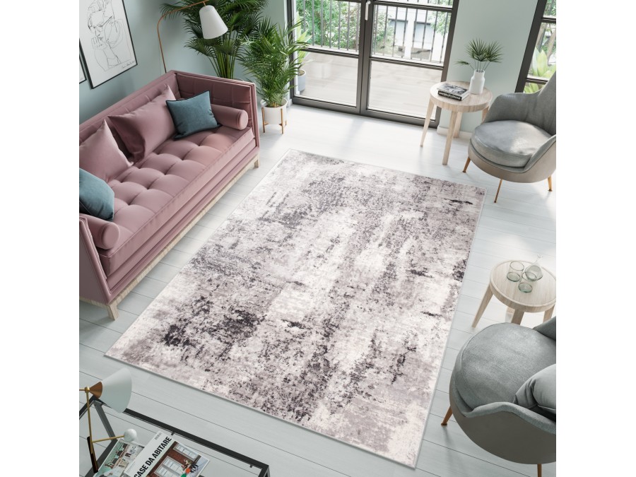 Dywan Alanya g343a gray - opisDywan Alanya g343a gray. Prostokątny dywan, który doskonale sprawdzi się w minimalistycznym wnętrzu. W tym modelu paletę kolorów ograniczono do szarości, bieli i czerni. Barwy doskonale się uzupełniają, tworząc elegancki element wyposażenia wnętrza. Warto zauważyć, że wzór, jaki zastosowano przypomina swobodne pociągnięcia...