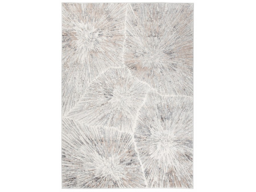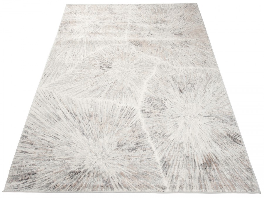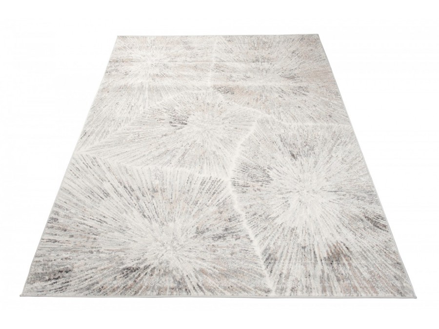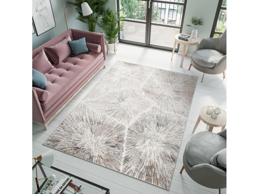 Dywan Villson 00.712a vizon z kolekcji Villson to prawdziwa perełka dla miłośników eleganckiego i nowoczesnego designu. Jego głównym kolorem jest delikatny, pastelowy beż, który nadaje wnętrzu subtelności i klasy. Beż ten jest idealnie zrównoważony przez dodatkowe odcienie szarości, które dodają dywanowi głębi i charakteru. Wzór dywanu jest wyjątkowo intrygujący - składa się zgeometrycznych, rozetowych kształtów, które przypominają wybuchy fajerwerków lub promienie słońca przebijające się przez chmury. Każdy z tych wzorów jest starannie rozmieszczony, tworząc harmonijną kompozycję, która przyciąga wzrok i zachwyca swoją precyzją. Dywan ma kształt prostokąta, co sprawia, że jest uniwersalny i łatwy do dopasowania do różnych pomieszczeń.