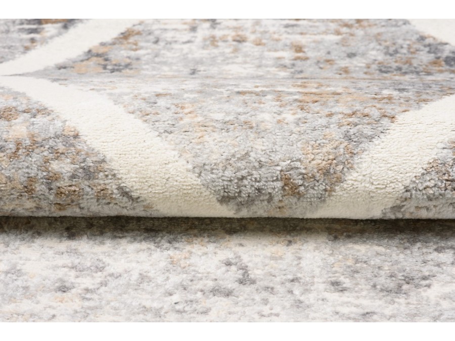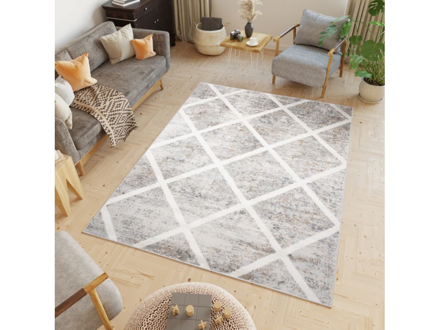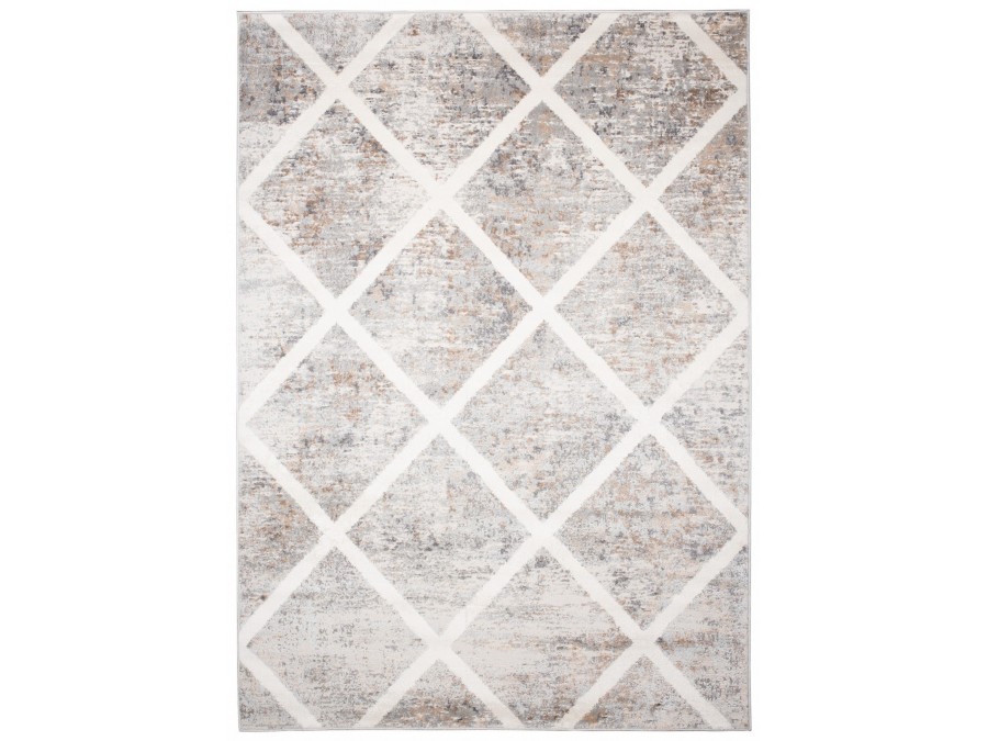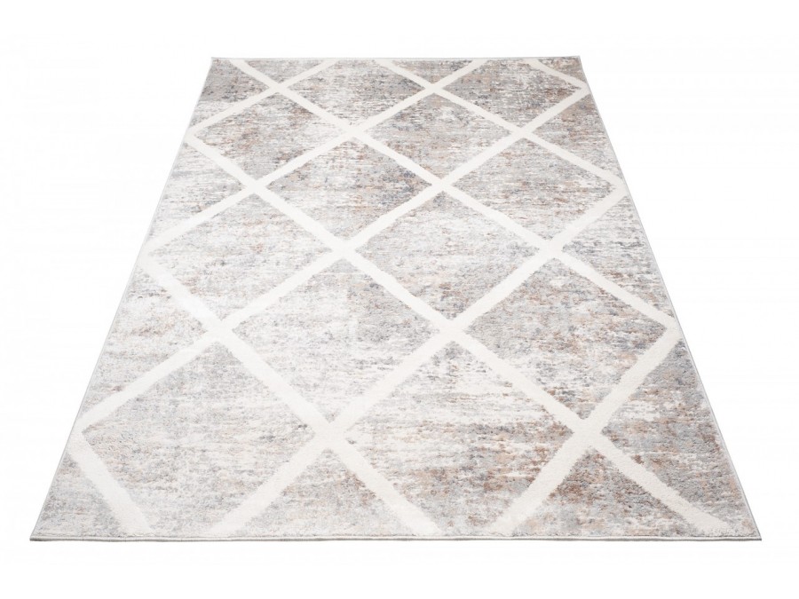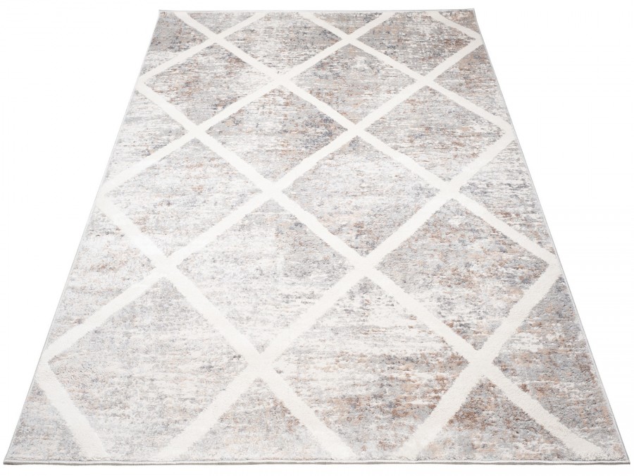 Dywan Villson 00.873d light gray z kolekcji Villson to prawdziwa perełka dla miłośników eleganckiego i subtelnego designu. Dominującym kolorem tego dywanu jest jasny szary, który nadaje mu wyjątkowo uniwersalny charakter, idealny do różnorodnych aranżacji wnętrz. Jasny szary jest tu przełamany delikatnymi odcieniami beżu i bieli, które dodają dywanowi głębi i wizualnej lekkości. Wzór dywanu jest geometryczny, oparty na dużych, romboidalnych kształtach, które tworzą harmonijny, powtarzalny wzór. Każdy romb jest obramowany białymi liniami, które kontrastują z jasnoszarym tłem, dodając dywanowi dynamiki i nowoczesnego charakteru. Kształt dywanu jest prostokątny, co sprawia, że idealnie wpasuje się w różne przestrzenie, zarówno w salonie, jak i w sypialni czy jadalni. Dywan nie posiada frędzli, co dodaje mu minimalistycznego wyglądu, który jest obecnie bardzo pożądany w aranżacjach wnętrz.