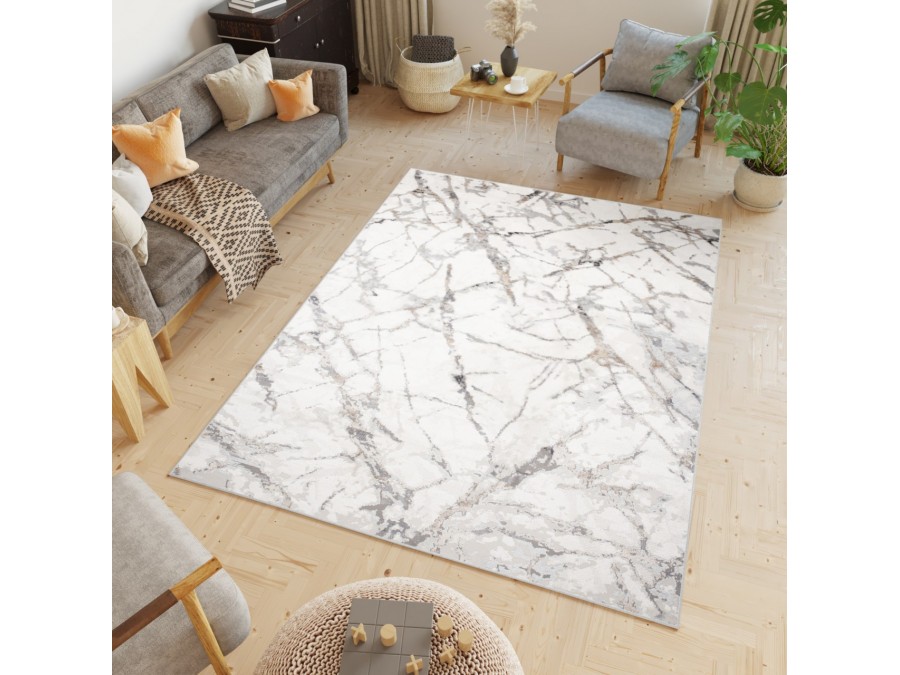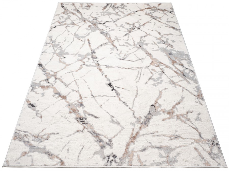 Dywan Villson 00.681a dark vizon z kolekcji Villson to prawdziwa perełka dla miłośników eleganckiego i nowoczesnego designu. Jego głównym kolorem jest delikatny, ciemny beż, który nadaje wnętrzu subtelną elegancję. Kolory dodatkowe, takie jak jasne szarości, brązy i subtelne czarne akcenty, tworzą harmonijną kompozycję, która nie przytłacza, a jednocześnie dodaje głębi. Wzór dywanu jest inspirowany naturalnym marmurem, z delikatnymi żyłkami i plamkami, które imitują strukturę tego szlachetnego kamienia. Linie i plamki są rozmieszczone w sposób nieregularny, co dodaje dywanowi dynamiki i sprawia, że każdy fragment jest unikatowy. Dywan ma kształt prostokąta, co czyni go uniwersalnym dodatkiem do różnych pomieszczeń. Nie posiada frędzli, co nadaje mu nowoczesny, minimalistyczny wygląd.