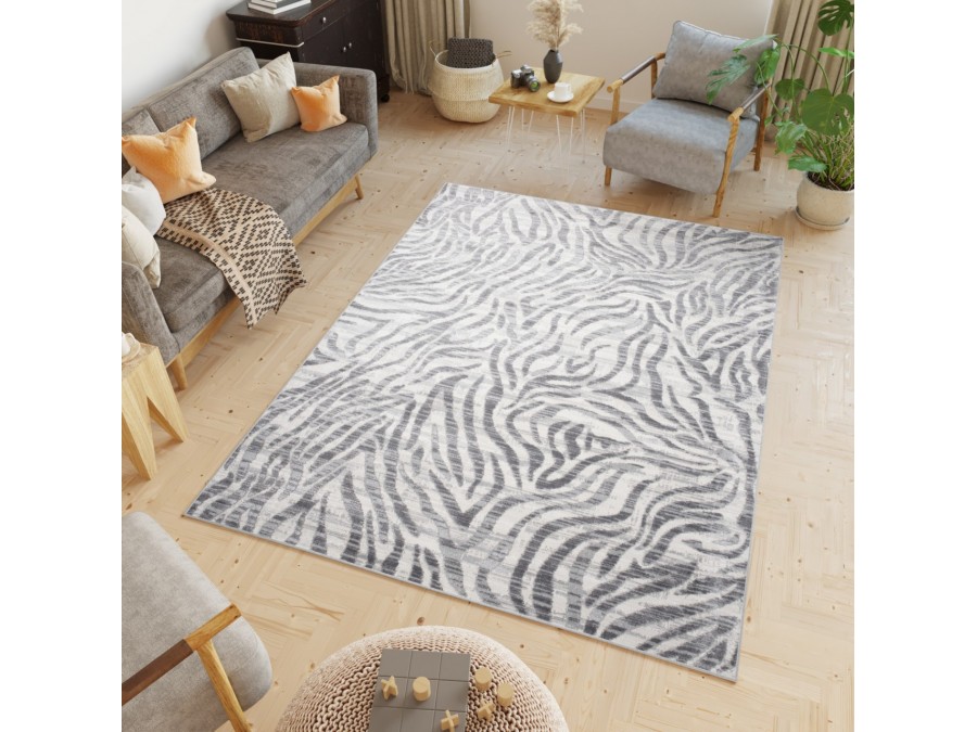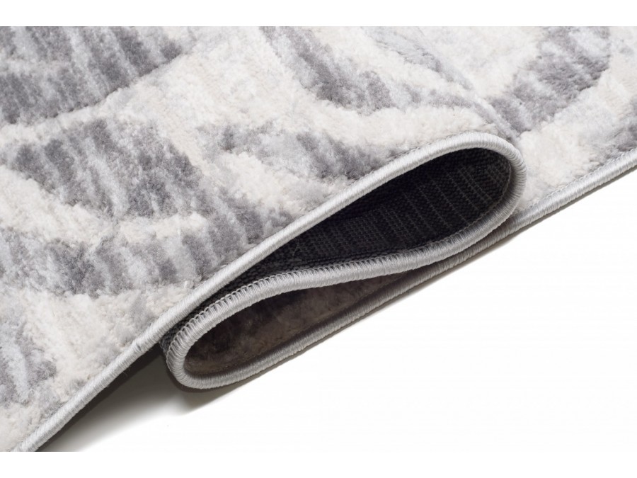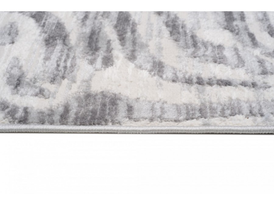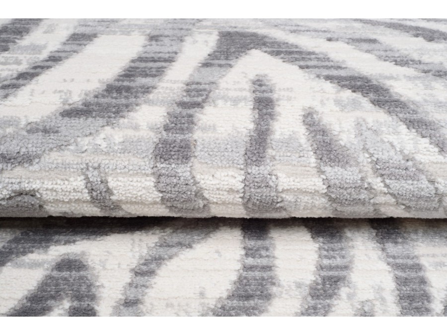 Dywan Villson 0047L Gray z kolekcji Villson to propozycja dla osób, które cenią nowoczesny minimalizm połączony z elegancją. Dominującą kolorystyką dywanu jest jasna szarość przełamana nieco ciemniejszymi, subtelnie cieniowanymi pasami, które układają się w abstrakcyjny wzór przypominający fale lub motyw inspirowany zwierzęcą fakturą. Całość tworzy efekt przestrzenności i delikatnego ruchu, dzięki czemu dywan nie jest jednolity, lecz pełen subtelnej dynamiki.