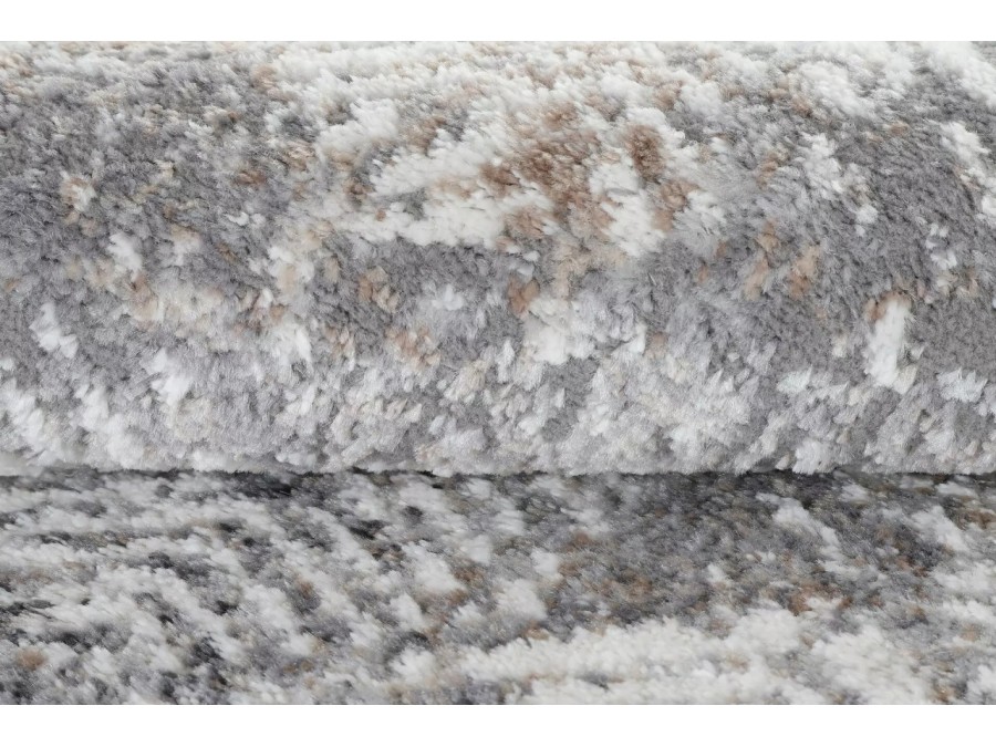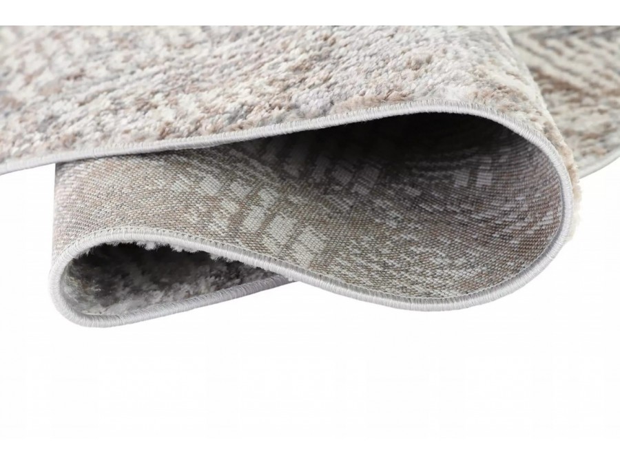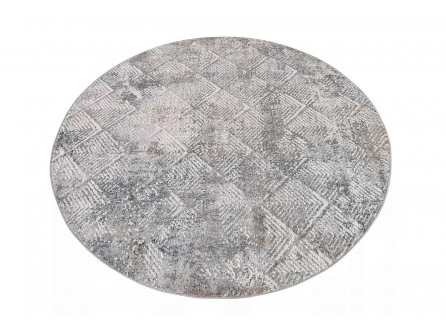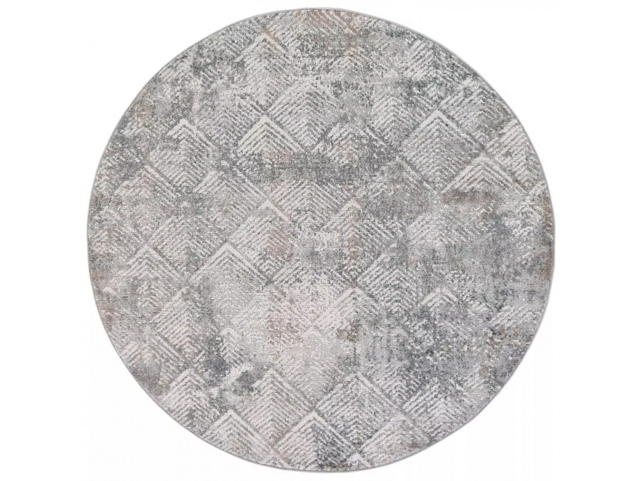 Dywan koło Villson 00.166a light gray z kolekcji Villson to prawdziwa perełka dla miłośników subtelnych i eleganckich wnętrz. Jego główny kolor to delikatny, jasny szary, który nadaje wnętrzu spokoju i harmonii. Wzór dywanu jest niezwykle interesujący - składa się z geometrycznych kształtów, przypominających romby i trójkąty, które układają się w harmonijny, powtarzalny wzór. Kolory dodatkowe, które przeplatają się w tym wzorze, to odcienie ciemniejszego szarego oraz subtelne beżowe akcenty, które dodają dywanowi głębi i charakteru. Dywan ma okrągły kształt, co sprawia, że idealnie nadaje się do przełamania monotonii prostokątnych mebli i pomieszczeń. Nie posiada frędzli, co dodaje mu nowoczesnego, minimalistycznego wyglądu.