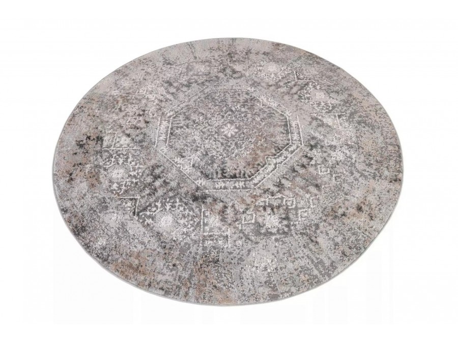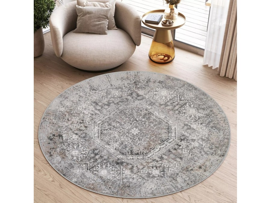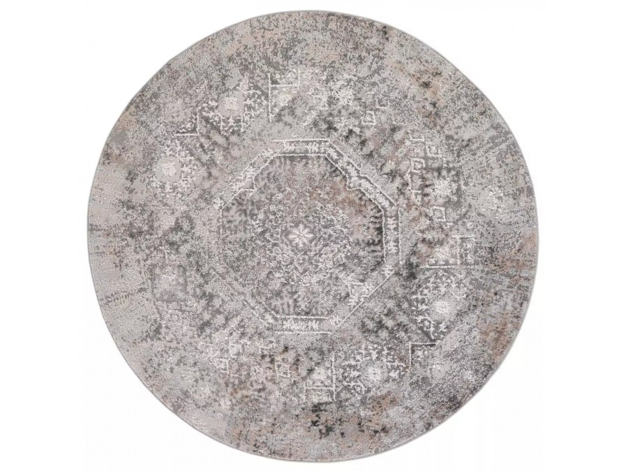 Dywan koło Villson 00.150a light gray z kolekcji Villson to prawdziwa perełka dla miłośników klasycznego piękna i subtelnej elegancji. Jego główny kolor to delikatny jasny szary, który tworzy spokojne tło dla bogatego wzoru. Dodatkowe kolory to różne odcienie szarości, które nadają dywanowi głębi i trójwymiarowości. Wzór dywanu jest niezwykle intrygujący i złożony, składający się z centralnego medalionu otoczonego przez ornamenty przypominające tradycyjne motywy perskie. Centralny medalion jest wypełniony geometrycznymi i kwiatowymi elementami, które tworzą harmonijną kompozycję, przyciągającą wzrok i zachęcającą do bliższego przyjrzenia się. Dywan ma okrągły kształt, co dodaje mu unikalności i sprawia, że idealnie pasuje do wnętrz o nieregularnych kształtach lub jako centralny element w pomieszczeniu.