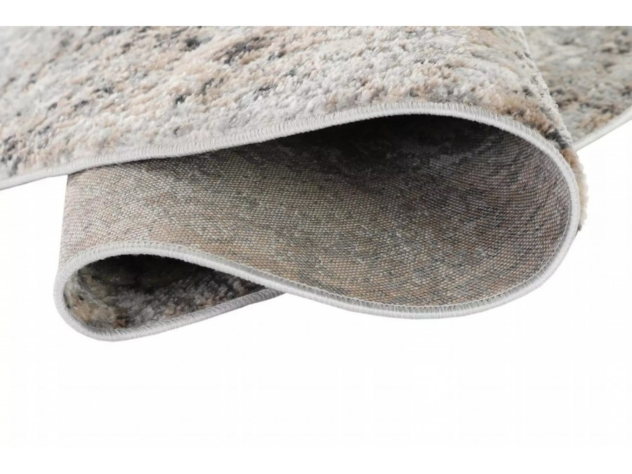 Dywan Villson 00.150a light gray nie posiada frędzli, co nadaje mu nowoczesny wygląd, jednocześnie zachowując tradycyjny urok. Jego okrągły kształt sprawia, że może być wykorzystany w różnych aranżacjach, od salonów po sypialnie, tworząc przytulną atmosferę. Inspiracją do urządzenia wnętrza z tym dywanem może być połączenie go z meblami w stylu vintage lub skandynawskim, gdzie jasne drewno i pastelowe kolory będą pięknie kontrastować z szarością dywanu. Można również wyobrazić sobie przestrzeń z ciemnymi meblami, gdzie dywan będzie łagodził surowość ciemnych barw, dodając wnętrzu miękkości i ciepła. Dodatkowo, dywan ten świetnie sprawdzi się w przestrzeniach z dużą ilością naturalnego światła, gdzie jego wzór będzie jeszcze bardziej wyrazisty.