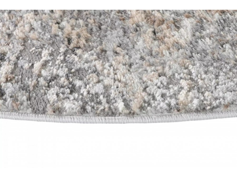 Dywan koło Villson 00.714 vizon z kolekcji Villson to prawdziwa perełka dla miłośników subtelnych i eleganckich wnętrz. Jego główny kolor to delikatny vizon, który nadaje mu klasycznego i uniwersalnego charakteru. Wzór dywanu jest niezwykle interesujący - składa się z geometrycznych linii i delikatnych przejść tonalnych, które tworzą wrażenie głębi i ruchu. Linie te są subtelnie przetykane odcieniami szarości i beżu, co dodaje dywanowi dodatkowej głębi i sprawia, że jego powierzchnia wydaje się żywa i dynamiczna. Kształt dywanu jest okrągły, co dodaje mu wyjątkowego uroku i sprawia, że idealnie wpisuje się w nowoczesne oraz klasyczne aranżacje wnętrz. Dywan nie posiada frędzli, co podkreśla jego minimalistyczny i elegancki design.