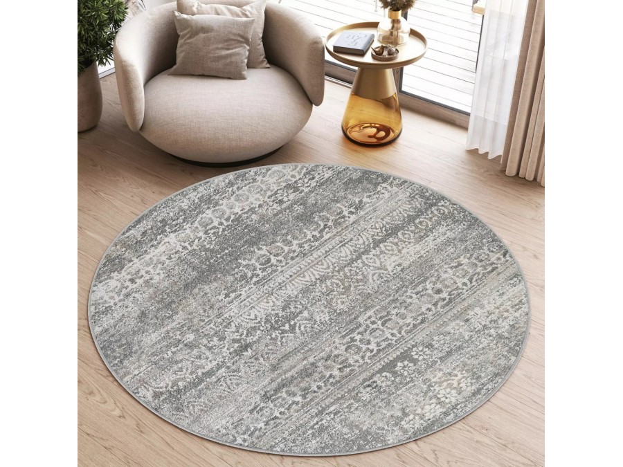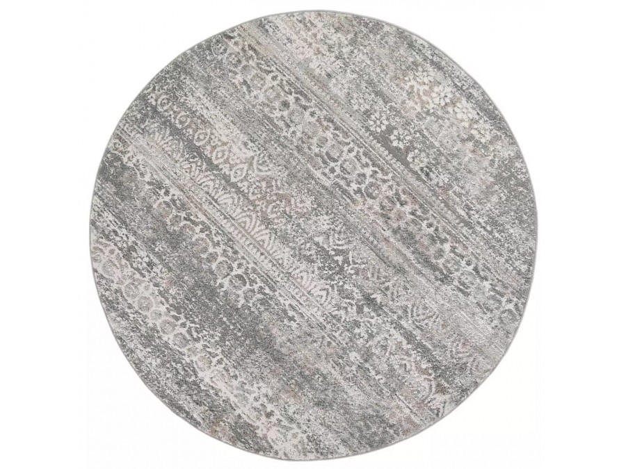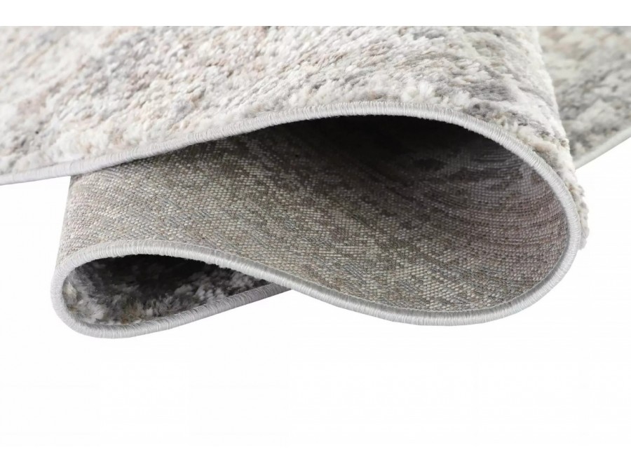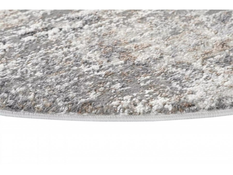 Dywan koło Villson 00.184a light gray z kolekcji Villson to prawdziwa perełka dla miłośników eleganckich i subtelnych wnętrz. Jego głównym kolorem jest delikatny jasny szary, który nadaje wnętrzu spokoju i harmonii. Kolory dodatkowe to różne odcienie szarości, które tworzą bogatą teksturę i głębię. Wzór dywanu jest niezwykle intrygujący - składa się zgeometrycznych kształtów i ornamentów, które układają się w diagonalne pasy. Te pasy są wypełnione drobnymi, powtarzającymi się motywami, które przypominają starożytne wzory, nadając dywanowi klasyczny i ponadczasowy charakter. Kształt dywanu jest okrągły, co dodaje mu miękkości i łagodności, idealnie kontrastując z geometrycznymi wzorami. Dywan nie posiada frędzli, co sprawia, że jego wygląd jest nowoczesny i minimalistyczny.