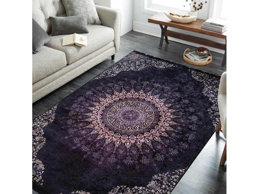 Produkt został wykonany metodą nadruku cyfrowego, co pozwala uzyskać wyraziste kolory i szczegółowe wzory, zachowując przy tym miękkość i komfort użytkowania. Spód dywanu został pokryty antypoślizgową powłoką, dzięki czemu dywan idealnie przylega do podłoża, minimalizując ryzyko przesuwania się, co jest szczególnie ważne w domach z dziećmi i zwierzętami.