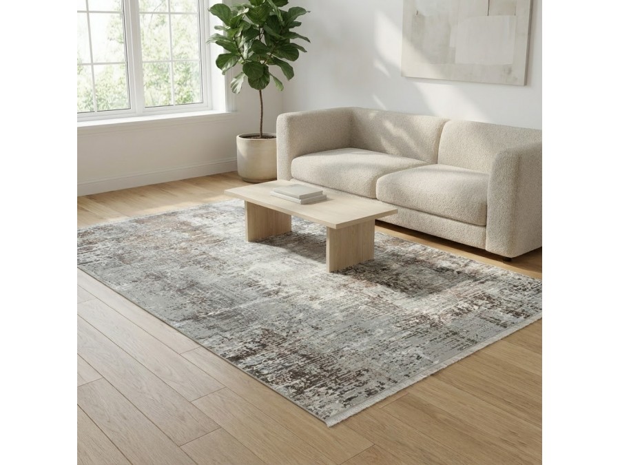 Dywan Exclusive 200 dark vizion gold z kolekcji Exclusive to prawdziwe dzieło sztuki, które przyciąga wzrok swoją niepowtarzalną estetyką. Dominującym kolorem dywanu jest głęboki, ciemny szary, który nadaje mu elegancki i nowoczesny charakter. Wzór dywanu jest niezwykle intrygujący - przypomina abstrakcyjne malowidło, gdzie ciemne plamy i smugi przeplatają się z jaśniejszymi, niemal białymi akcentami, tworząc efekt głębi i trójwymiarowości. Dodatkowe kolory, takie jak złoty i brązowy, dodają dywanowi subtelnego blasku i ciepła, sprawiając, że jest on idealnym elementem dekoracyjnym zarówno w nowoczesnych, jak i klasycznych wnętrzach. Dywan ma kształt prostokąta, co czyni go uniwersalnym wyborem do różnych pomieszczeń. Na obu krótszych bokach dywanu widoczne są delikatne frędzle, które dodają mu rustykalnego uroku i podkreślają jego rękodzielniczy charakter.