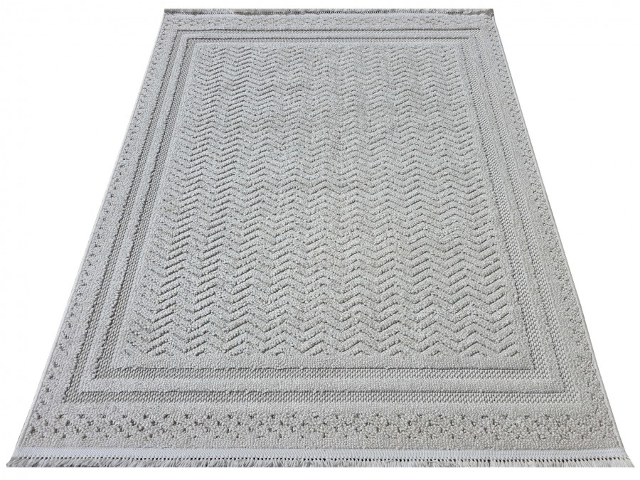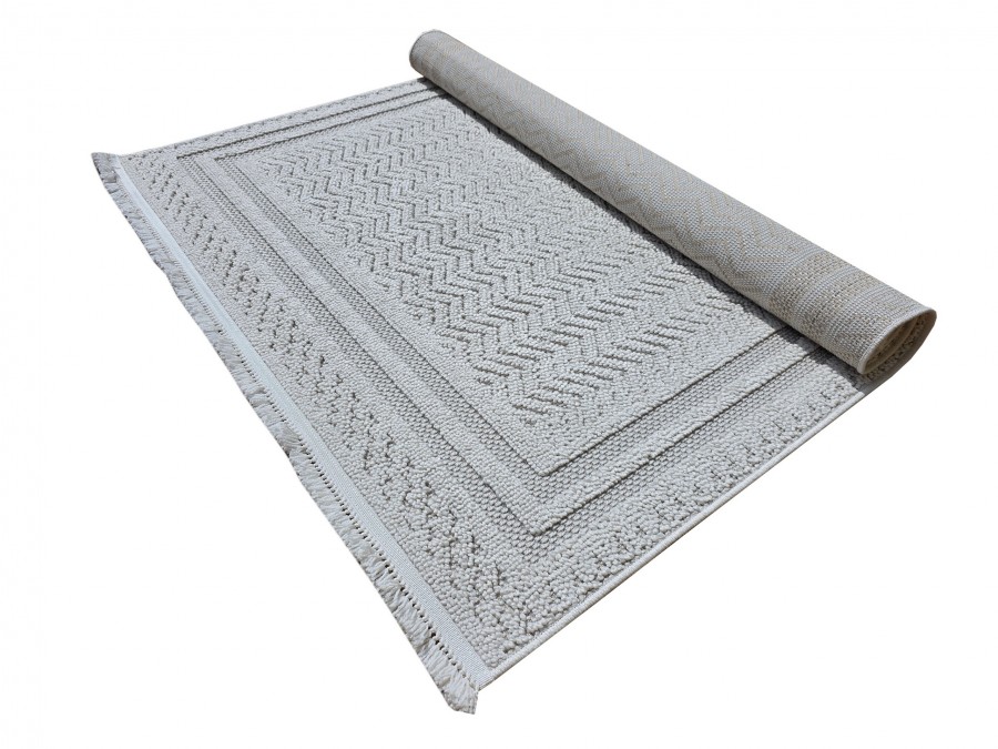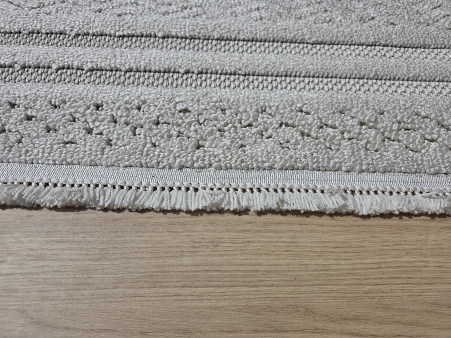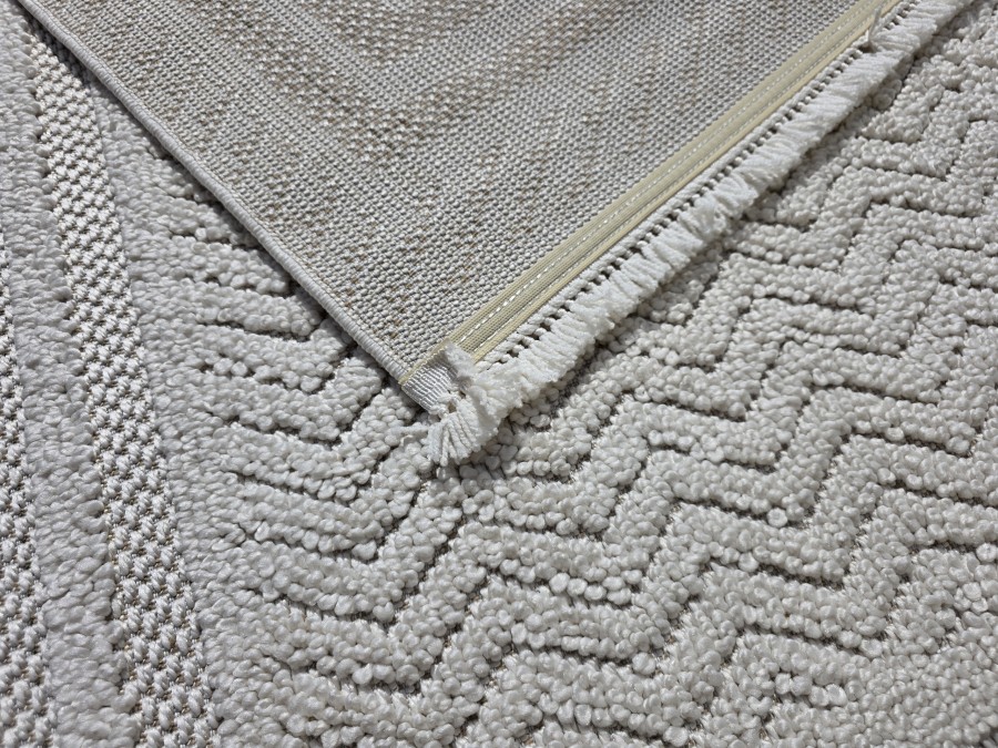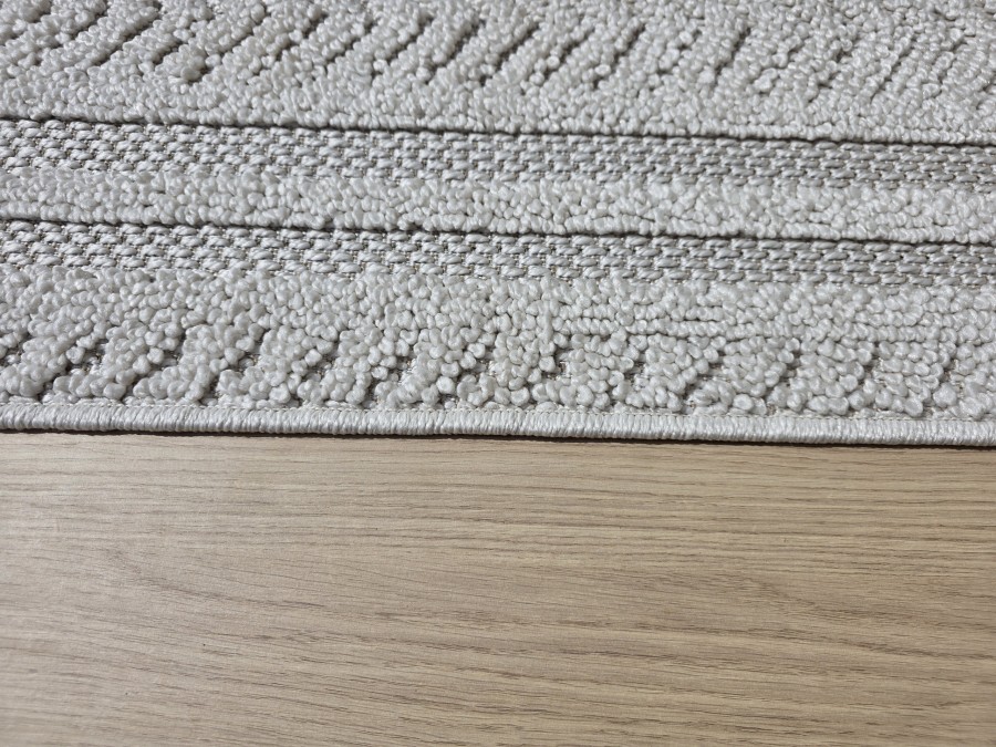 Dywan Milano 090 cream z kolekcji Milano to prawdziwa perełka dla miłośników klasycznej elegancji i subtelnego szyku. Jego główny kolor to delikatny, kremowy odcień, który nadaje wnętrzu ciepła i przytulności. Wzór dywanu jest wyjątkowo interesujący - składa się z geometrycznych, romboidalnych kształtów, które tworzą harmonijny, powtarzalny wzór. Te romby są ułożone w sposób, który sprawia, że dywan wygląda na trójwymiarowy, dodając głębi i dynamiki przestrzeni. Dodatkowo, wokół głównego wzoru biegnie obramowanie w tym samym kremowym kolorze, które jest nieco ciemniejsze, co dodaje kontrastu i podkreśla centralny motyw.