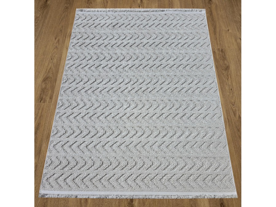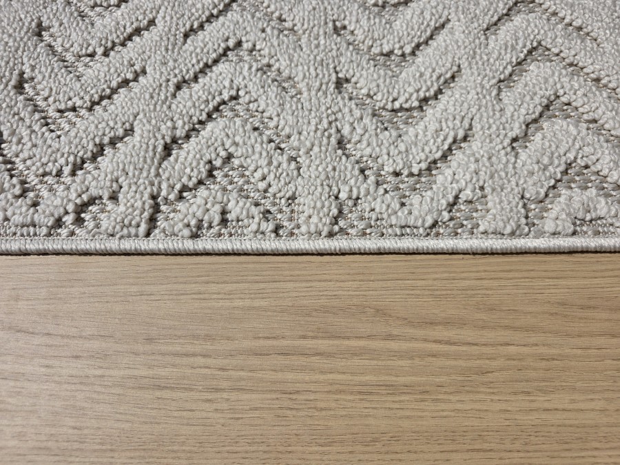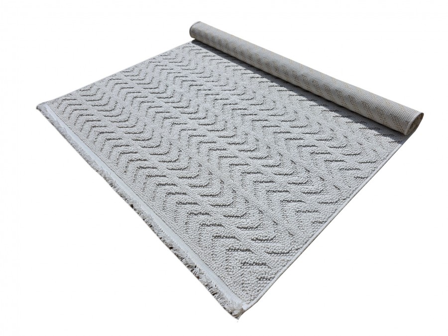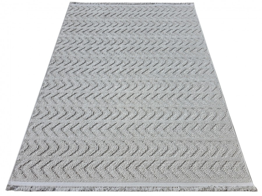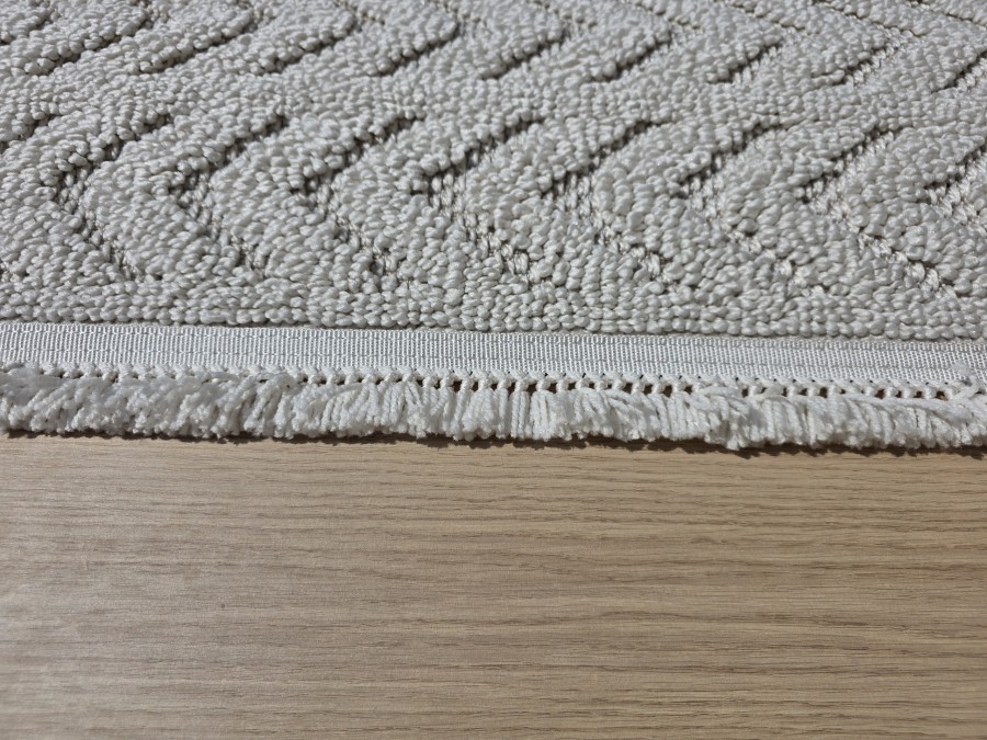 Dywan Milano 026 cream z kolekcji Milano to prawdziwa perełka dla miłośników klasycznej elegancji połączonej z nowoczesnym designem. Dominujący kolor dywanu to delikatny kremowy, który nadaje wnętrzu subtelności i ciepła. Wzór dywanu jest geometryczny, składający się z falujących linii, które tworzą harmonijne, powtarzające się wzory. Te linie są w odcieniach szarości, co dodaje dywanowi głębi i dynamiki, jednocześnie nie przytłaczając przestrzeni. Kształt dywanu jest prostokątny, co sprawia, że idealnie wpasuje się w różne pomieszczenia, od salonów po sypialnie. Dodatkowym atutem są frędzle na obu krótszych bokach, które nadają dywanowi rustykalnego charakteru, jednocześnie podkreślając jego rękodzielniczy urok.