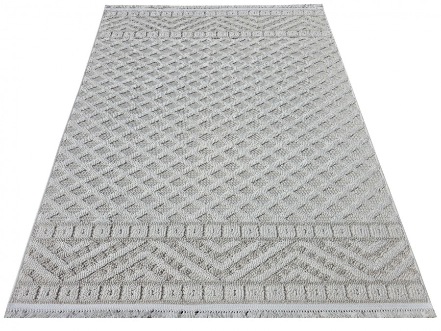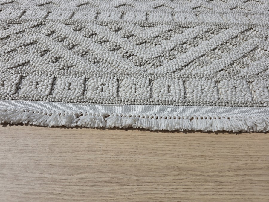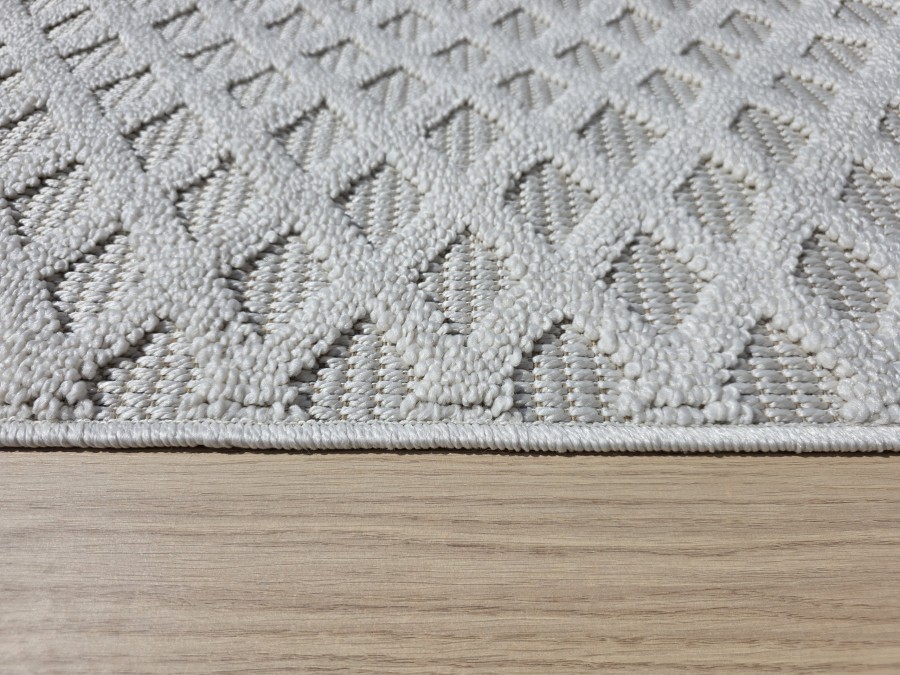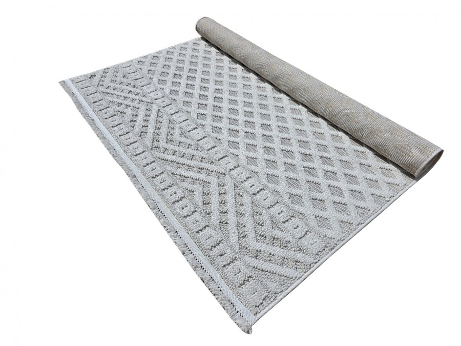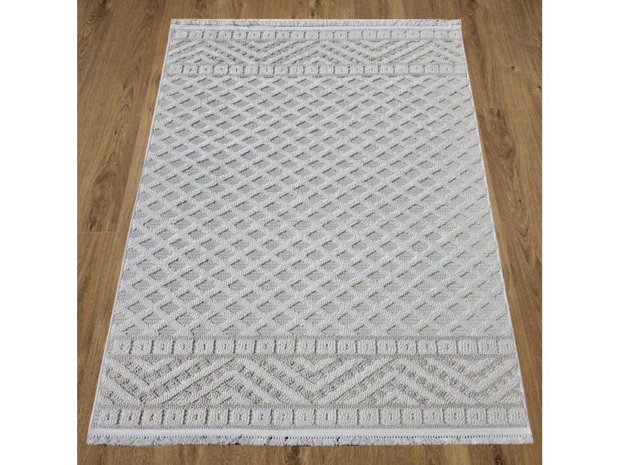 Dywan Milano 027 cream z kolekcji Milano to prawdziwa perełka dla miłośników klasycznej elegancji z nutą nowoczesności. Jego głównym kolorem jest kremowy, który nadaje wnętrzu subtelności i ciepła. Kolor ten jest idealnie zrównoważony przez delikatne szare akcenty, które dodają dywanowi głębi i charakteru. Wzór dywanu jest niezwykle intrygujący – centralna część zdobiona jest geometrycznym motywem rombów, który przywodzi na myśl tradycyjne, ręcznie tkane dywany. Ten wzór jest otoczony przez paski z delikatnymi, zygzakowatymi liniami, które dodają dywanowi dynamiki i sprawiają, że nie jest on monotonny. Kształt dywanu jest klasycznie prostokątny, co sprawia, że łatwo dopasować go do różnych przestrzeni.