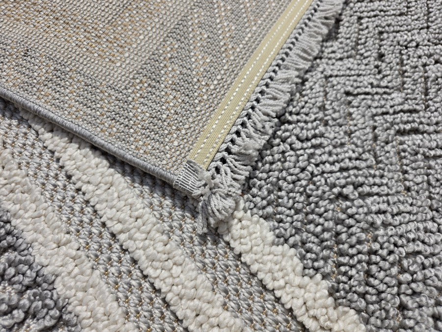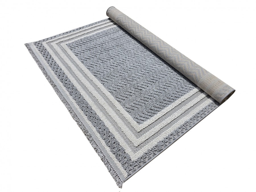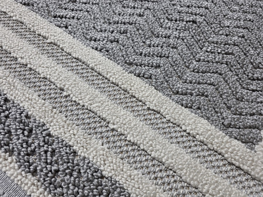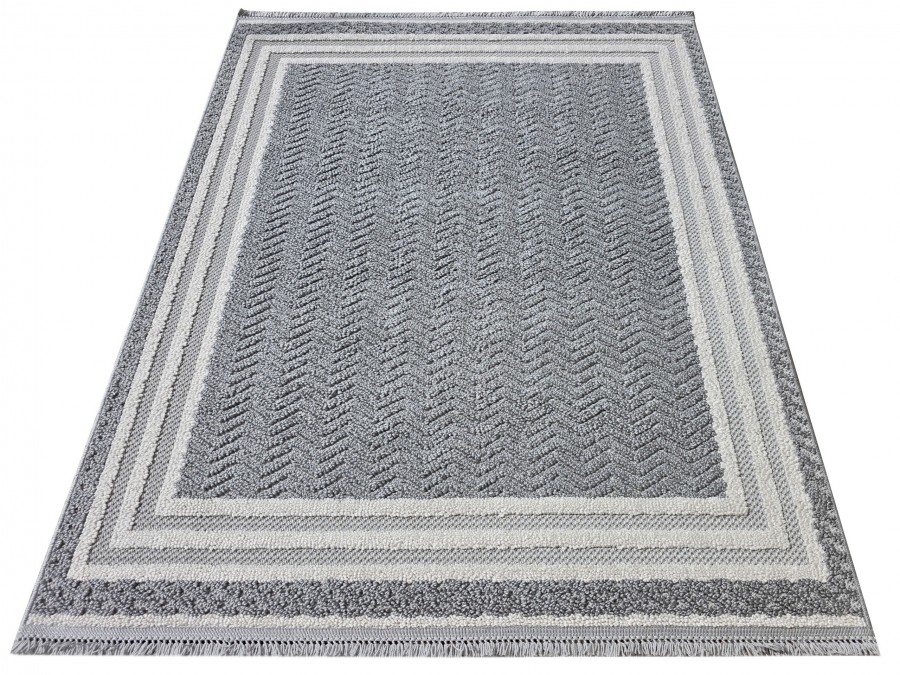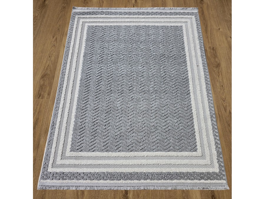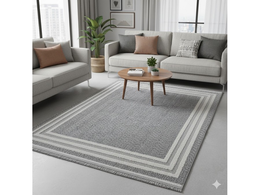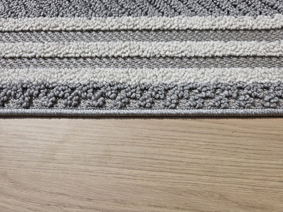Dywan Milano 090 gray cream z kolekcji Milano to prawdziwa perełka dla miłośników eleganckiego i subtelnego designu. Jego główny kolor to stonowany szary, który nadaje dywanowi klasyczny i uniwersalny charakter. Szarość ta jest idealnie zrównoważona przez dodatkowe odcienie kremowego, które pojawiają się w delikatnych pasach otaczających centralną część dywanu. Te kremowe akcenty dodają całości lekkości i elegancji, sprawiając, że dywan staje się wyjątkowo przyjemny dla oka.