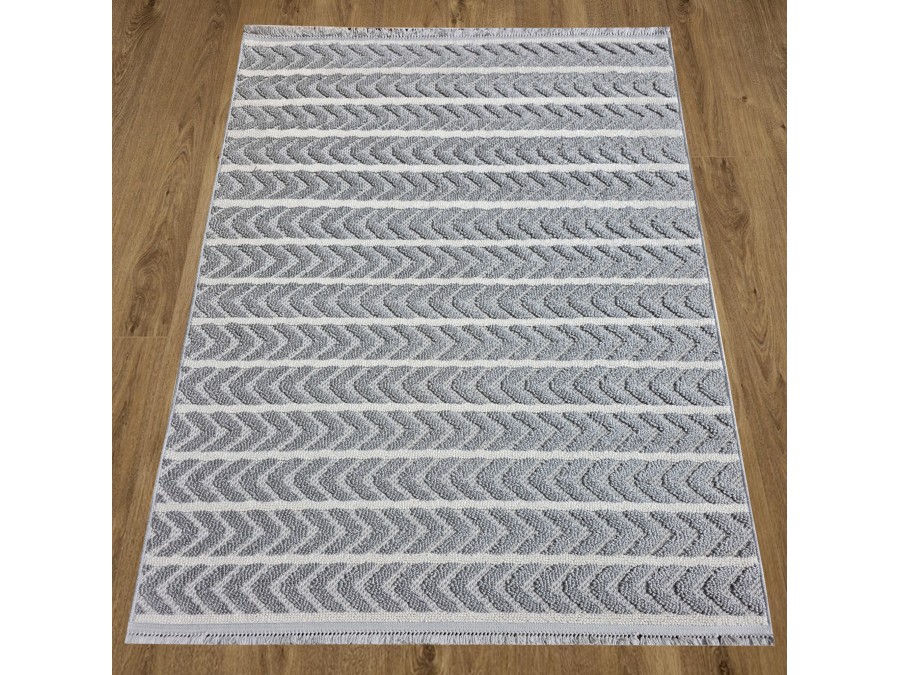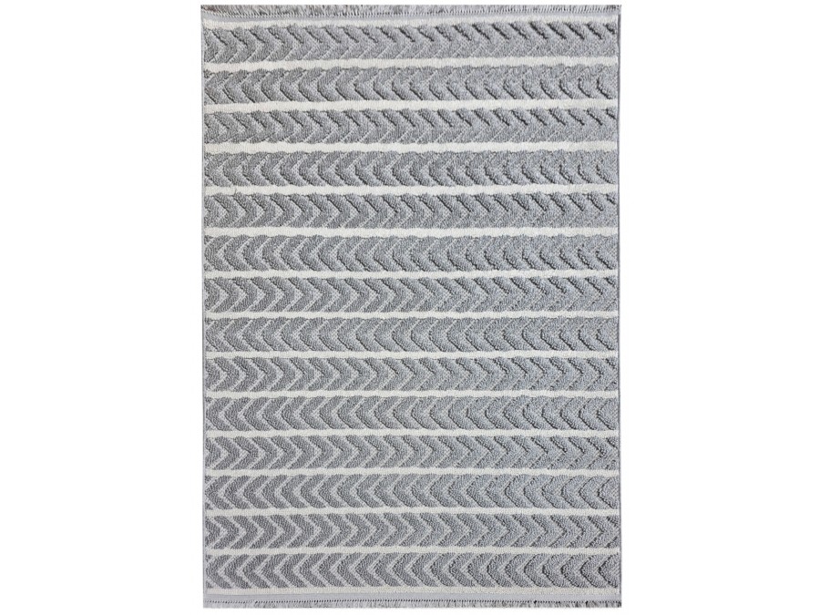 Dywan Milano 026 gray cream z kolekcji Milano to prawdziwa perełka dla miłośników nowoczesnego designu. Jego głównym kolorem jest szary, który nadaje wnętrzu elegancji i spokoju. Kolor ten jest przełamany delikatnymi kremowymi akcentami, które dodają dywanowi subtelności i lekkości. Wzór dywanu jest geometryczny, składający się z równoległych pasów, które tworzą efekt falujących linii. Każdy pas jest wypełniony drobnym, pikselowym wzorem, który nadaje dywanowi tekstury i głębi. Kształt dywanu jest prostokątny, co sprawia, że jest on uniwersalny i łatwy do wkomponowania w różne przestrzenie. Dodatkowo, dywan posiada frędzle na krótszych bokach, co dodaje mu rustykalnego charakteru i sprawia, że jest jeszcze bardziej interesujący wizualnie.