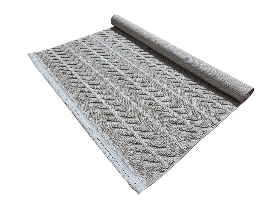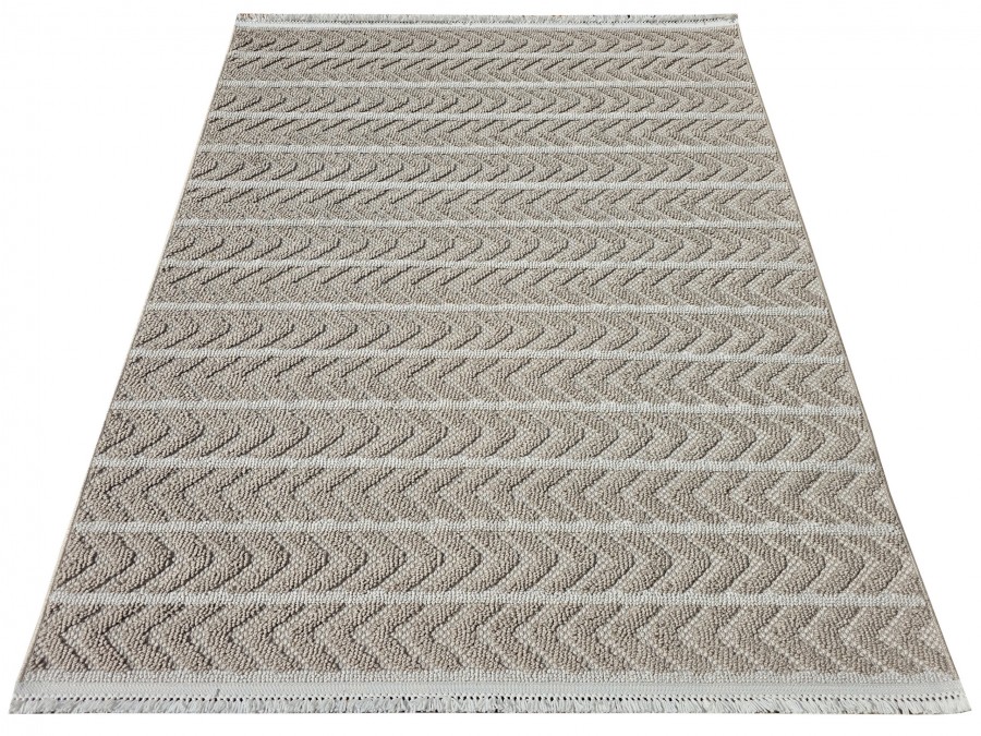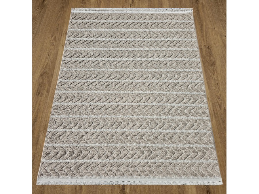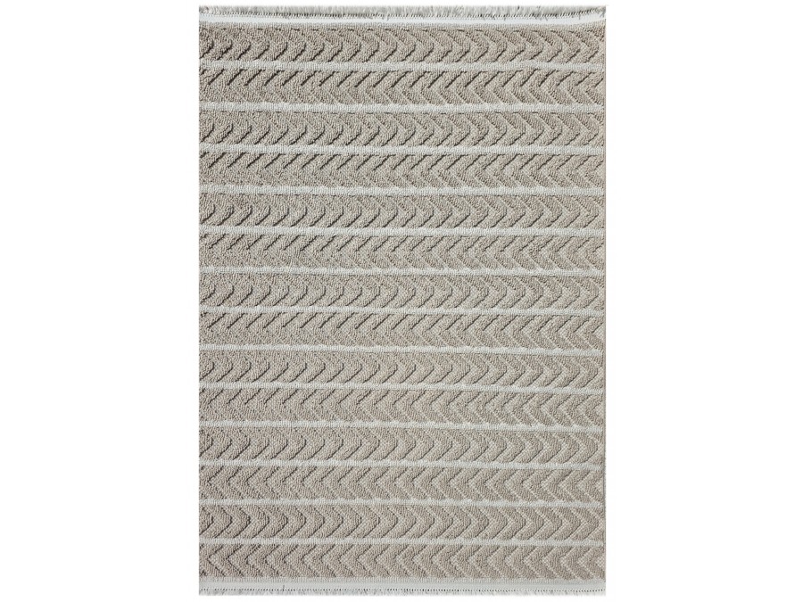 Dywan Milano 026 vizon beige z kolekcji Milano to wyjątkowy element dekoracyjny, który przyciąga uwagę swoją subtelną elegancją i stonowaną kolorystyką. Dominującym kolorem dywanu jest beż, który nadaje mu neutralny i uniwersalny charakter, idealny do różnorodnych aranżacji wnętrz. Beżowe tło jest wzbogacone o delikatne odcienie szarości oraz brązu, które tworzą harmonijną kompozycję, dodając dywanowi głębi i wyrazistości. Wzór dywanu jest geometryczny, składający się z powtarzających się, równoległych linii, które tworzą wrażenie ruchu i dynamiki. Linie te są subtelnie zaznaczone, dzięki czemu wzór nie przytłacza, a jedynie dodaje dywanowi charakteru. Dywan ma kształt prostokąta, co sprawia, że jest łatwy do dopasowania do różnych przestrzeni, od salonów po sypialnie.