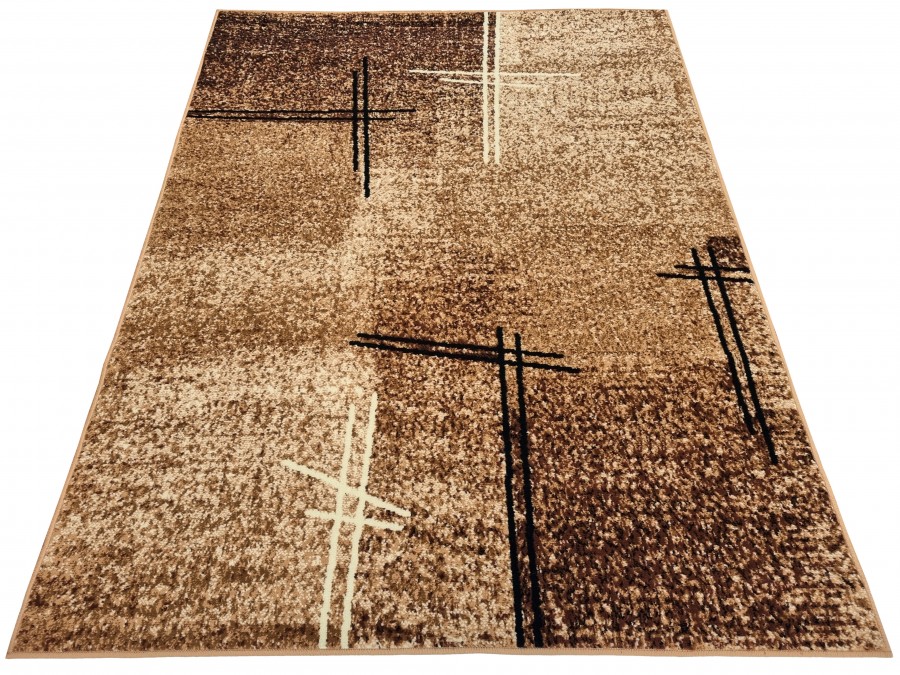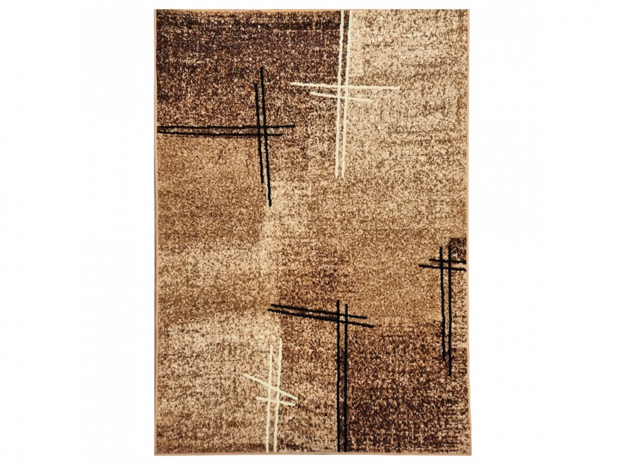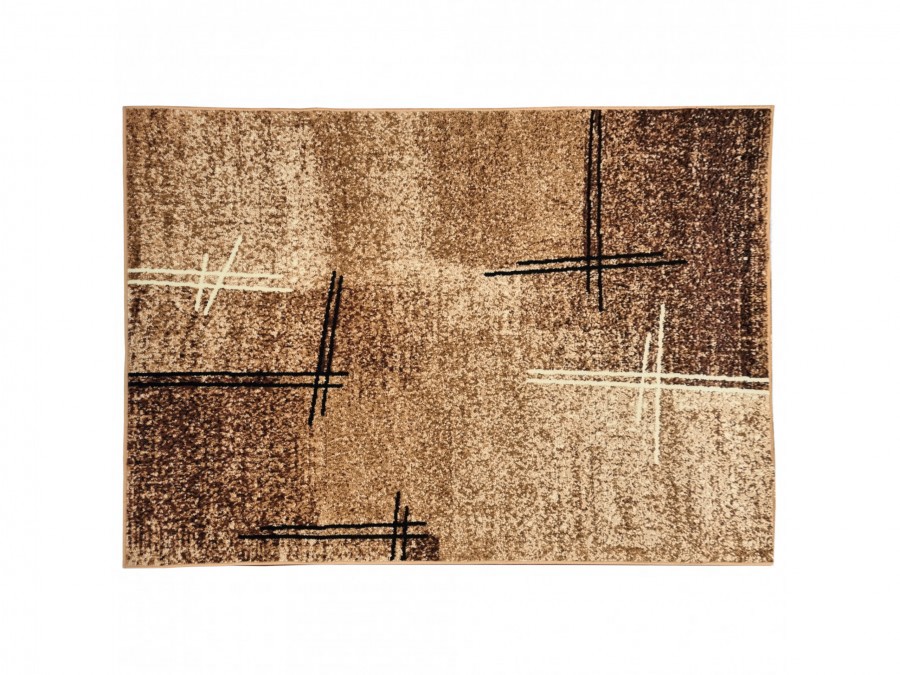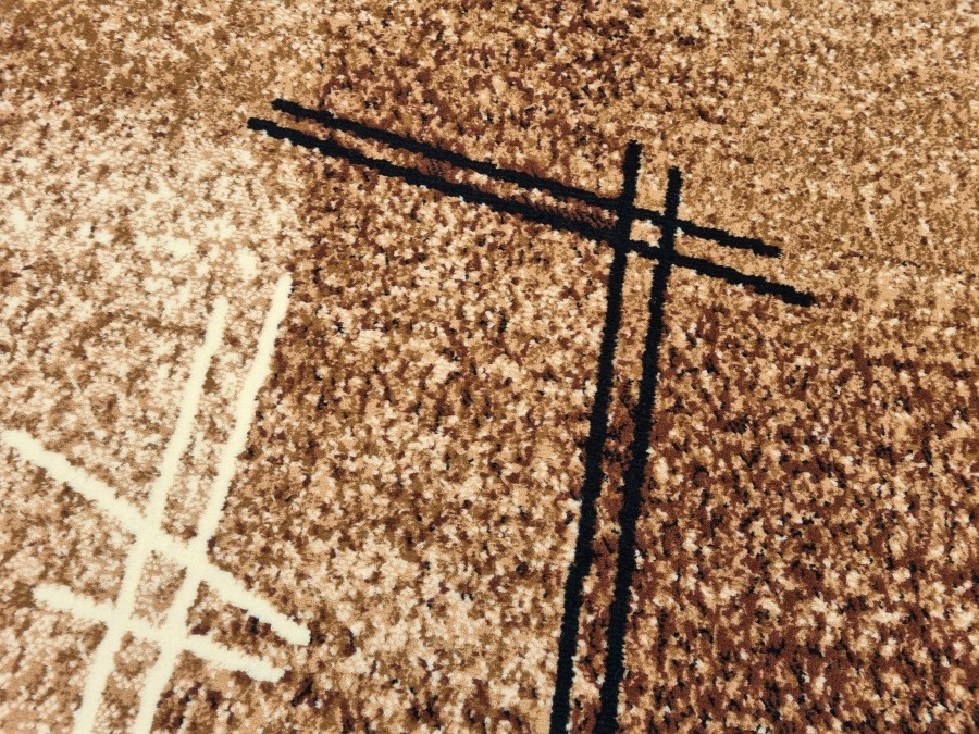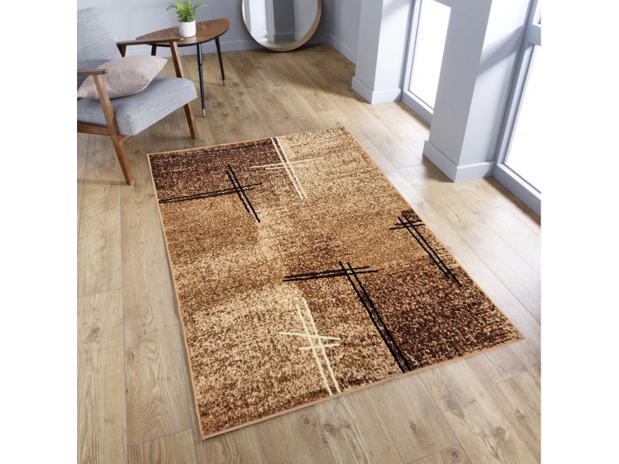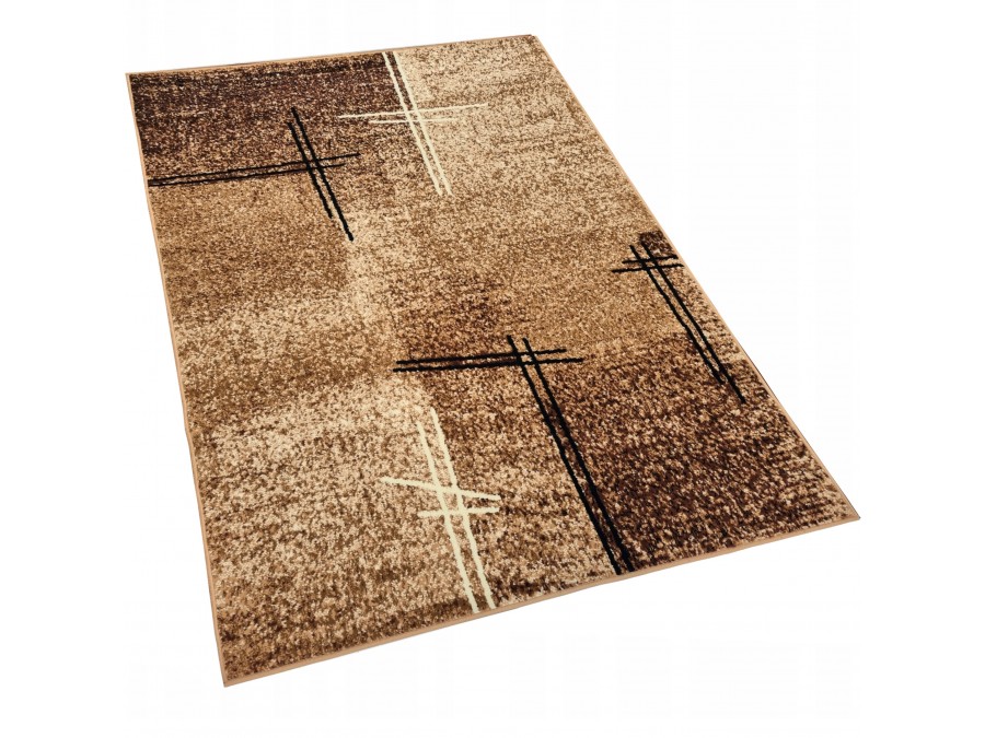 Dywan Dywan PP new 011 beige z kolekcji PP to prawdziwa perełka dla miłośników klasycznej elegancji połączonej z nowoczesnym designem. Dominującym kolorem tego dywanu jest beż, który nadaje mu ciepła i przytulności, idealnie komponując się z różnorodnymi wnętrzami. Beżowe tło jest subtelnie przełamane przez brązowe i czarne akcenty, które dodają dywanowi głębi i charakteru. Wzór dywanu jest geometryczny, składający się z dużych, prostokątnych pól, które są przecinane przez proste linie tworzące krzyże. Tegeometryczne wzory nadają dywanowi nowoczesny, a zarazem ponadczasowy wygląd, który może być zarówno centralnym punktem aranżacji, jak i subtelnym dopełnieniem wystroju.