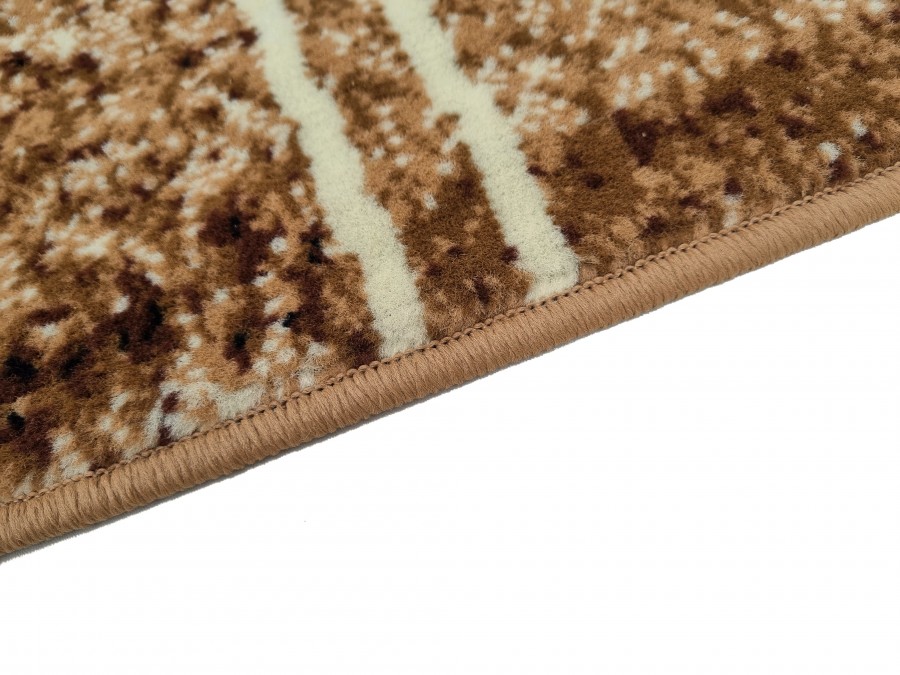 Kształt dywanu jest klasycznie prostokątny, co sprawia, że jest on niezwykle uniwersalny i łatwy do dopasowania do różnych pomieszczeń, od salonów po sypialnie. Dywan nie posiada frędzli, co dodaje mu minimalistycznego, współczesnego charakteru. Brzegi są wykończone w sposób estetyczny, co podkreśla dbałość o detale w jego wykonaniu. Inspiracją do urządzenia wnętrza z tym dywanem może być połączenie klasyki z nowoczesnością. Wyobraź sobie salon, w którym ściany są w neutralnych odcieniach szarości lub bieli, a meble to połączenie drewnianych elementów z minimalistycznymi, skórzanymi fotelami. Dywan Dywan PP new 011 beige może leżeć pod designerskim stołem kawowym, tworząc harmonijną całość. Dodaj kilka poduszek w odcieniach brązu i czerni, a także rośliny doniczkowe, które wniosą do wnętrza odrobinę natury. Lampa zgeometrycznym abażurem dopełni aranżację, nawiązując do wzoru dywanu.