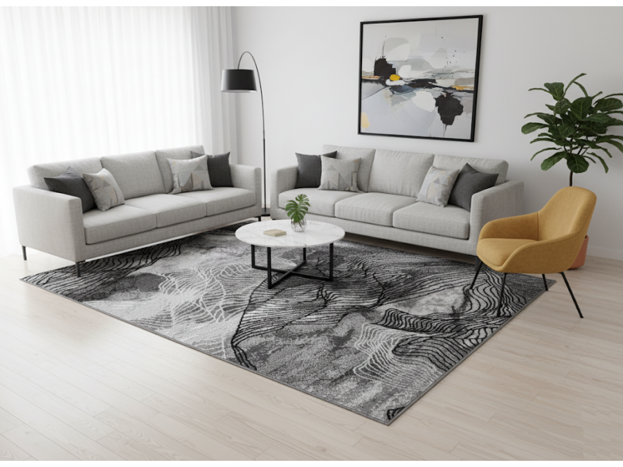 Jeśli chodzi o inspiracje wnętrzarskie, Dywan PP new 010 gray idealnie wpisze się w nowoczesne salony, gdzie jego wzór może stać się centralnym punktem aranżacji. Wyobraź sobie przestronny salon z wysokimi sufitami, gdzie dywan leży pod minimalistycznym, czarnym narożnikiem. Ściany w odcieniach bieli i szarości, zgeometryzowane obrazy lub abstrakcyjne rzeźby na półkach, a do tego duże okna wpuszczające naturalne światło, które wydobywa wszystkie subtelności wzoru dywanu. Można też pójść w stronę industrialnego stylu, łącząc dywan z meblami z metalu i drewna, oraz betonowymi elementami dekoracyjnymi. W takim wnętrzu dywan będzie nie tylko ozdobą, ale i elementem, który ociepli przestrzeń, dodając jej przytulności.