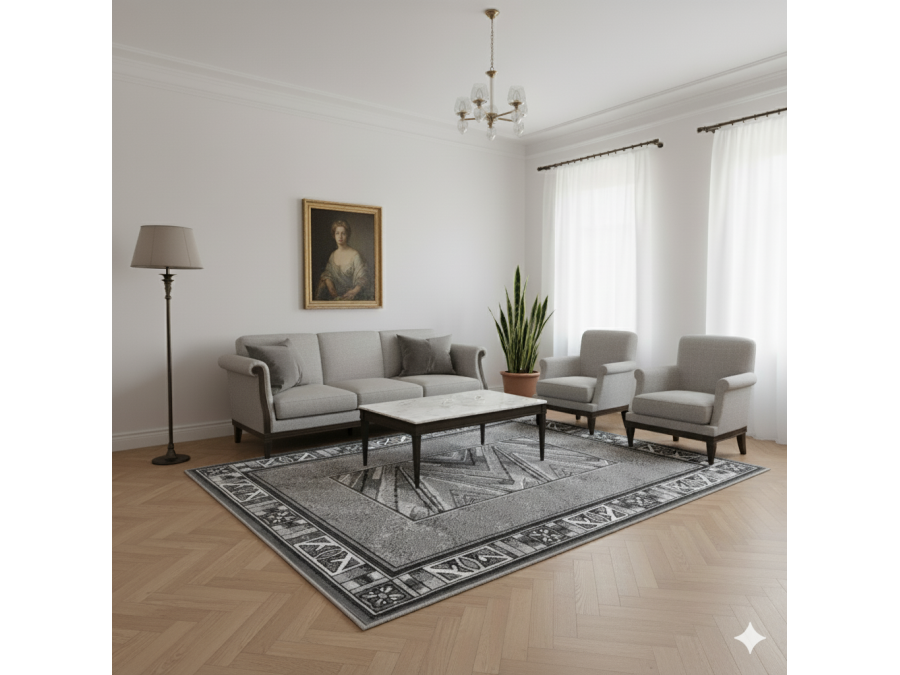 Wyobraź sobie wnętrze, w którym ten dywan jest centralnym punktem aranżacji. W salonie, gdzie ściany są w neutralnych odcieniach bieli i beżu, dywan Dywan PP new 280 gray może być uzupełniony meblami w odcieniach szarości i czerni, tworząc spójną, elegancką przestrzeń. Dodaj kilka poduszek w geometryczne wzory, które będą nawiązywać do motywu dywanu, oraz rośliny doniczkowe, które wniosą odrobinę natury. W sypialni, dywan ten może leżeć pod łóżkiem, tworząc przytulną atmosferę, a jego wzór będzie pięknie kontrastował z prostą pościelą. Jeśli szukasz dywanu, który przypadnie do gustu osobom ceniącym sobie klasykę z nowoczesnym twistem, Dywan PP new 280 gray jest idealnym wyborem. Jego uniwersalność i elegancki design sprawiają, że będzie on ozdobą każdego wnętrza, dodając mu klasy i stylu. Zachęcamy do zakupu, aby Twoje wnętrze nabrało wyjątkowego charakteru.